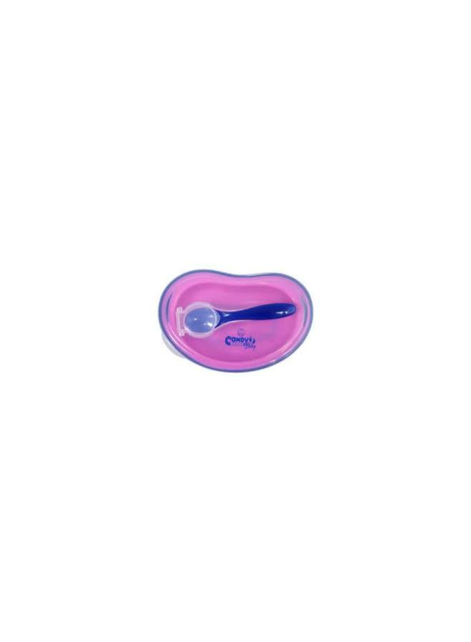 بينك بلو طبق بغطاء ومعلقة جدبد